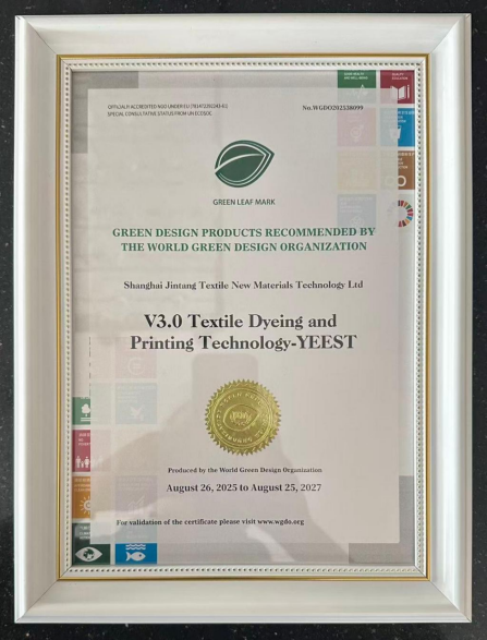 近日,公司凭借其前瞻性的绿色创新实践,成功获得世界绿色设计组织(WGDO)推荐的“绿叶标”认证,成为全球纺织印染行业首家获此殊荣的企业。这不仅填补了行业在国际绿色设计认证领域的空白,更以中国智造的实力,为全球纺织业的可持续发展注入新动能。